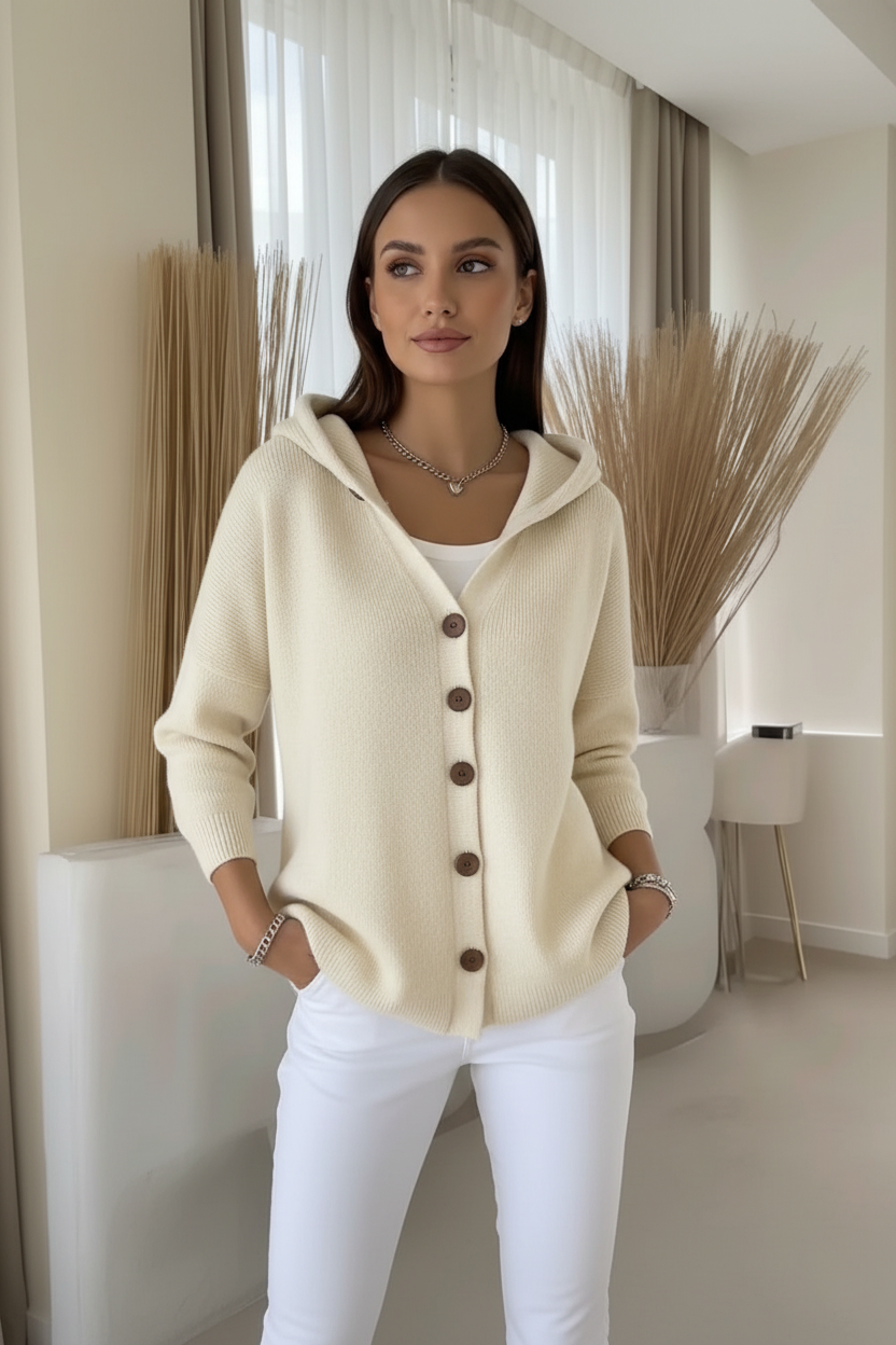 Cardigan Lavorato a Maglia con Cappuccio-Elegante Monopetto Donna